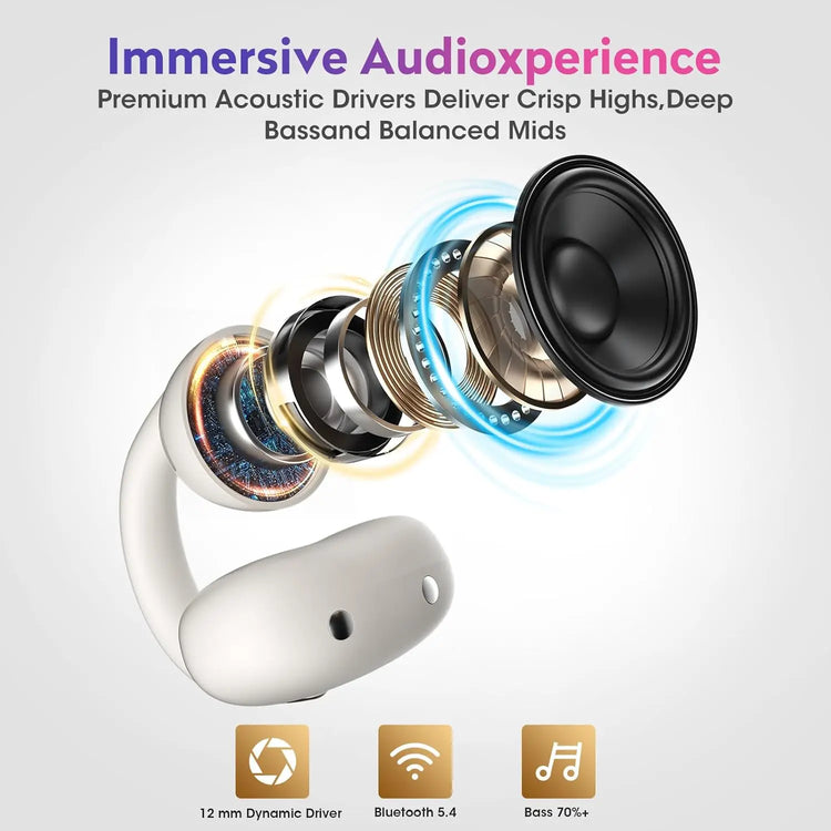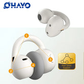 Auriculares inalámbricos Ohayo A7 de oído abierto con clip y audio de alta resolución, graves potentes, llamadas nítidas con IA, diseño de anillo abierto, resistentes al agua.