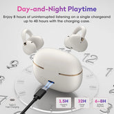 Los auriculares abiertos Ohayo A7 garantizan una batería de 8 horas de duración y hasta 40 horas de reproducción total. Con carga rápida, con solo 10 minutos de carga se obtienen 2 horas de reproducción.
