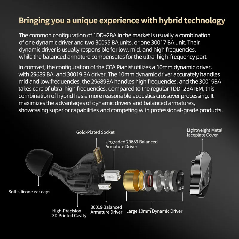 Auriculares intraaurales híbridos CCA PIANIST de metal con graves HIFI y monitorización, deportivos, con cancelación de ruido.