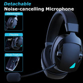 Auriculares para juegos con micrófono desmontable con cancelación de ruido, Bluetooth 2.4G, USB, conector con cable de 3.5 mm, 3 modos para múltiples dispositivos.