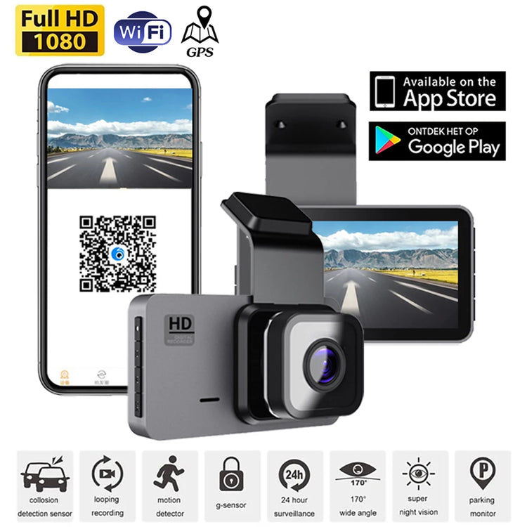 WiFi Car DVR 3.0 Inches Screen Full HD 1080P Dual Lens Rear View Dash Cam Vehicle Camera Video Recorder Parking Monitor Auto Motion Detector Car Camcorder GPS Tracker