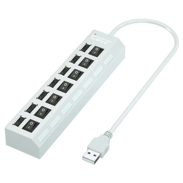 • 7 Port Multi USB Splitter :Expand your device connectivity with 7 USB ports for simultaneous charging and data transfer.